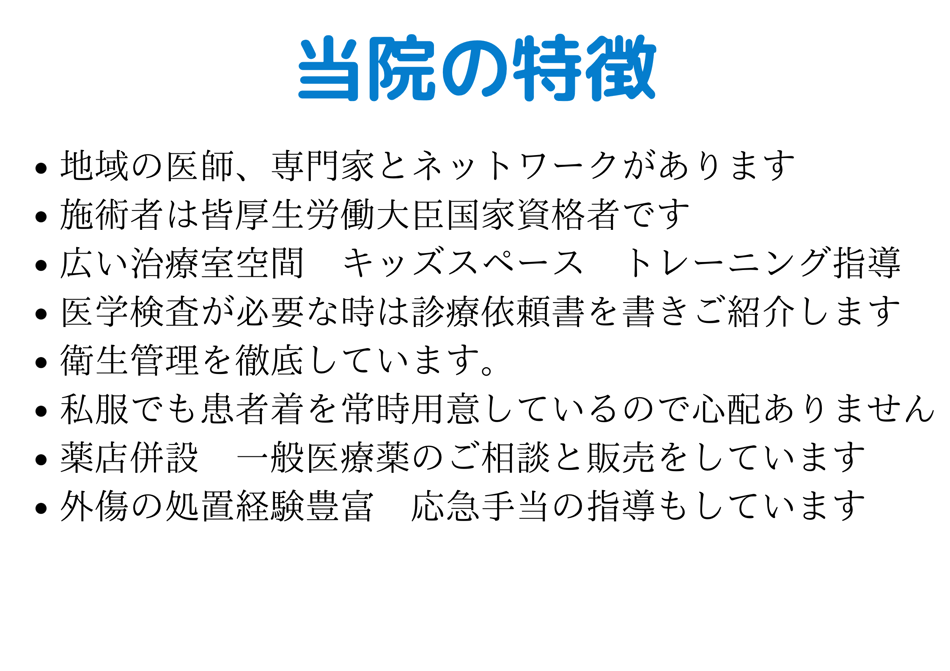 応急手当と書くように、人の手を痛めているところに当てることを当院は大事にしています。