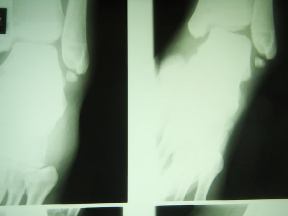 手術は成功していますが、その後のギプスが足に合わず圧迫を受けていました。