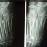 足首の捻挫に伴う骨折は認められませんでしたが、過去に何か所も骨折をしていたことが判明しました。