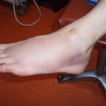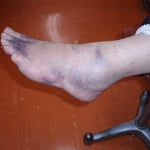 上記にもご紹介した足の外側の骨折は、足をひねった(捻挫)時によく合併する骨折です。足首を捻挫し1時間もしない内にパンパンに腫れ翌日にはどす黒い色が皮膚に現れれば